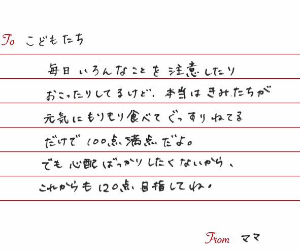 • To こどもたち From ママ